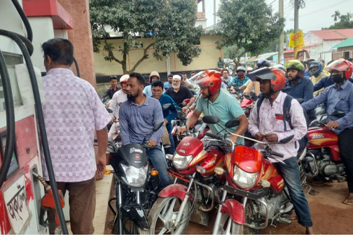শনিবার সকাল থেকেই উপজেলার বিভিন্ন ফিলিং স্টেশনে মানুষের ভিড় চরম পর্যায়ে পৌঁছে। মোটরসাইকেল ও অন্যান্য যানবাহনের দীর্ঘ সারিতে অনেককে ঘণ্টার পর ঘণ্টা অপেক্ষা করতে দেখা যায়।