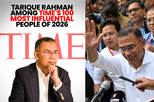যুক্তরাষ্ট্রের প্রখ্যাত সাময়িকী ‘টাইম’ এর বিশ্বের সবচেয়ে প্রভাবশালী ১০০ ব্যক্তির তালিকায় উঠে এসেছে বাংলাদেশের প্রধানমন্ত্রী তারেক রহমানের নাম। বুধবার ২০২৬ সালের বিশ্বের প্রভাবশালী ১০০ ব্যক্তির ওই তালিকা প্রকাশ করেছে মার্কিন এই সাময়িকী। এতে ‘লিডারস’ ক্যাটাগরিতে ১৬তম অবস্থানে রয়েছেন বাংলাদেশের প্রধানমন্ত্রী।