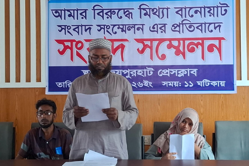 জয়পুরহাট প্রেসক্লাবে এক প্রতিবাদ সংবাদ সম্মেলনে স্থানীয় ব্যবসায়ী ও জাময়াত নেতা মোঃ আজিজুর রহমান তার বিরুদ্ধে আনা মিথ্যা, বানোয়াট ও উদ্দেশ্যপ্রণোদিত অভিযোগের তীব্র প্রতিবাদ ও নিন্দা জানিয়েছেন।