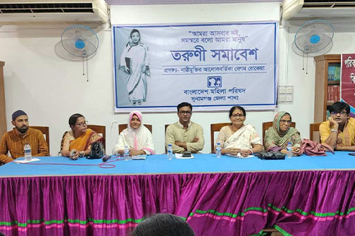 বাংলাদেশ মহিলা পরিষদের জেলা শাখার সভাপতি গৌরি ভট্টাচার্যে্যর সভাপতিত্বে অনুষ্ঠিত সমাবেশে স্বাগত বক্তব্য দেন সংগঠনের জেলা শাখার সাধারণ সম্পাদক শরীফা আশ্রাফী শম্পা।