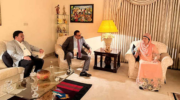 ঢাকায় নিযুক্ত ফিলিস্তিন রাষ্ট্রদূত ইউসুফ এস ওয়াই রামাদান সৌজন্য সাক্ষাৎ করেছেন বিএনপির চেয়ারপারসন ও সাবেক প্রধানমন্ত্রী বেগম খালেদা জিয়ার সঙ্গে।