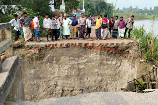 মঙ্গলবার (৭ অক্টোবর) রাত ১১টার দিকে পানির প্রবল স্রোতে ব্রিজের পশ্চিম পাশের সংযোগ সড়ক ভেঙে যোগাযোগ বন্ধ হয়ে যায়।