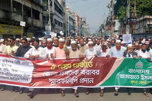 কেন্দ্রীয় ঘোষিত কর্মসূচির অংশ হিসেবে রোববার (১২ অক্টোবর) সকালে খুলনা জেলা জামায়াতে ইসলামীর উদ্যোগে নগরীর ডাকবাংলো চত্বরে সংক্ষিপ্ত সমাবেশ শেষে মিছিল সহকারে খুলনা জেলা প্রশাসকের কার্যালয়ে গিয়ে জড়ো হয়। এখান থেকে নেতৃবৃন্দ খুলনা জেলা প্রশাসকের দপ্তরে গিয়ে জেলা প্রশাসক মো. তৌফিকুর রহমানের হাতে স্মারক লিপি তুলে দেন।