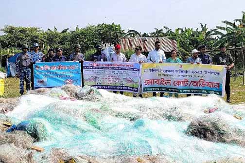 মুন্সীগঞ্জের শ্রীনগরে যৌথ বাহিনীর অভিযানে প্রায় ৭ কোটি টাকা মূল্যের অবৈধ কারেন্ট জাল ও ইলিশ জব্দ করেছে বাংলাদেশ কোস্ট গার্ড।