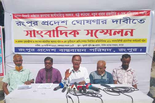 উত্তর বাংলাদেশের আঞ্চলিক ও অর্থনৈতিক বৈষম্য দূরীকরণ ও ক্ষমতার বিকেন্দ্রীকরণের লক্ষ্যে রংপুরকে অবিলম্বে পূর্ণাঙ্গ প্রদেশ ঘোষণার দাবি জানিয়েছে রংপুর প্রদেশ বাস্তবায়ন পরিষদ। এক কেন্দ্রিক সরকারের ওপর অনাস্থা প্রকাশ করে তারা মুখ্যমন্ত্রীসহ ৯ সদস্যের প্রাদেশিক সরকার এবং দুই কক্ষ বিশিষ্ট পার্লামেন্ট গঠনের মতো ৯ দফা যুগান্তকারী দাবি উত্থাপন করেছে। এসব দাবি দ্রুত বাস্তবায়ন না হলে রংপুরবাসী কঠোর আন্দোলনে যাবে বলে হুঁশিয়ারি দিয়েছে সংগঠনটি।