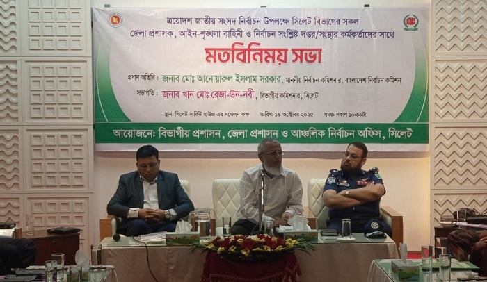 রোববার দুপুরে সিলেটের সার্কিট হাউজে ত্রয়োদশ জাতীয় সংসদ নির্বাচন উপলক্ষে সিলেট বিভাগের সকল জেলা প্রশাসক, আইনশৃঙ্খলা বাহিনী ও নির্বাচন সংশ্লিষ্ট দপ্তরের কর্মকর্তাদের সাথে মতবিনিময়কালে এ কথা জানান।