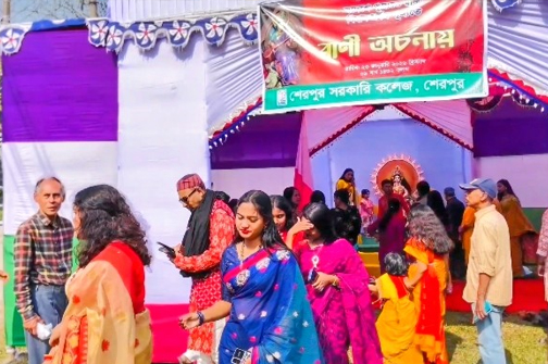 ‘স্বদেশে পূজ্যতে রাজা, বিদ্বান সর্বত্র পূজ্যতে’—এই প্রতিপাদ্যকে সামনে রেখে শেরপুর সরকারি কলেজে শ্রী শ্রী সরস্বতী পূজা অনুষ্ঠিত হয়েছে। শুক্রবার (২৩ জানুয়ারি) কলেজ প্রাঙ্গণে অস্থায়ী পূজা মণ্ডপে ধর্মীয় ভাবগাম্ভীর্য ও উৎসবমুখর পরিবেশে এ পূজা উদযাপন করা হয়।